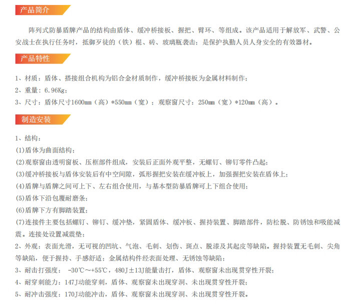 陣列式防暴盾牌 ZFBP-NT-1600